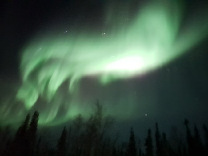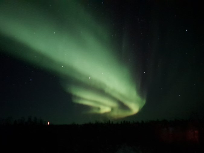운이 굉장히 좋았던게 연장시간부터 슬금슬금 오로라가 나오더니 첫날부터 오로라댄싱을 보게 되었어요ㅠㅠ 오로라 강도도 5정도 된다고 하더라구요. 굉장히 경이로웠고 증~~~말 추웠는데 추운게 느껴지지 않을만큼 너무 기쁘고 행복했어요ㅠㅠ 캐나다에 온 목적을 이루고 버킷리스트 하나를 이루었다는 점도 좋았지만 그냥 오로라 자체를 보는게 너무 신기하고 행복하더라구요. 이 날은 카메라 조작법도 서투르고 삼각대도 빌리지 못해서 핸드폰으로 찍은건데도 저정도였으니 얼마나 강한 오로라였는지 짐작이 가실런지ㅠ_ㅠ
